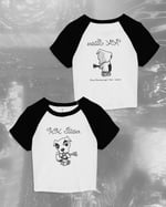 Black water based ink on a white/black Bella + Canvas 1201 baby tee.